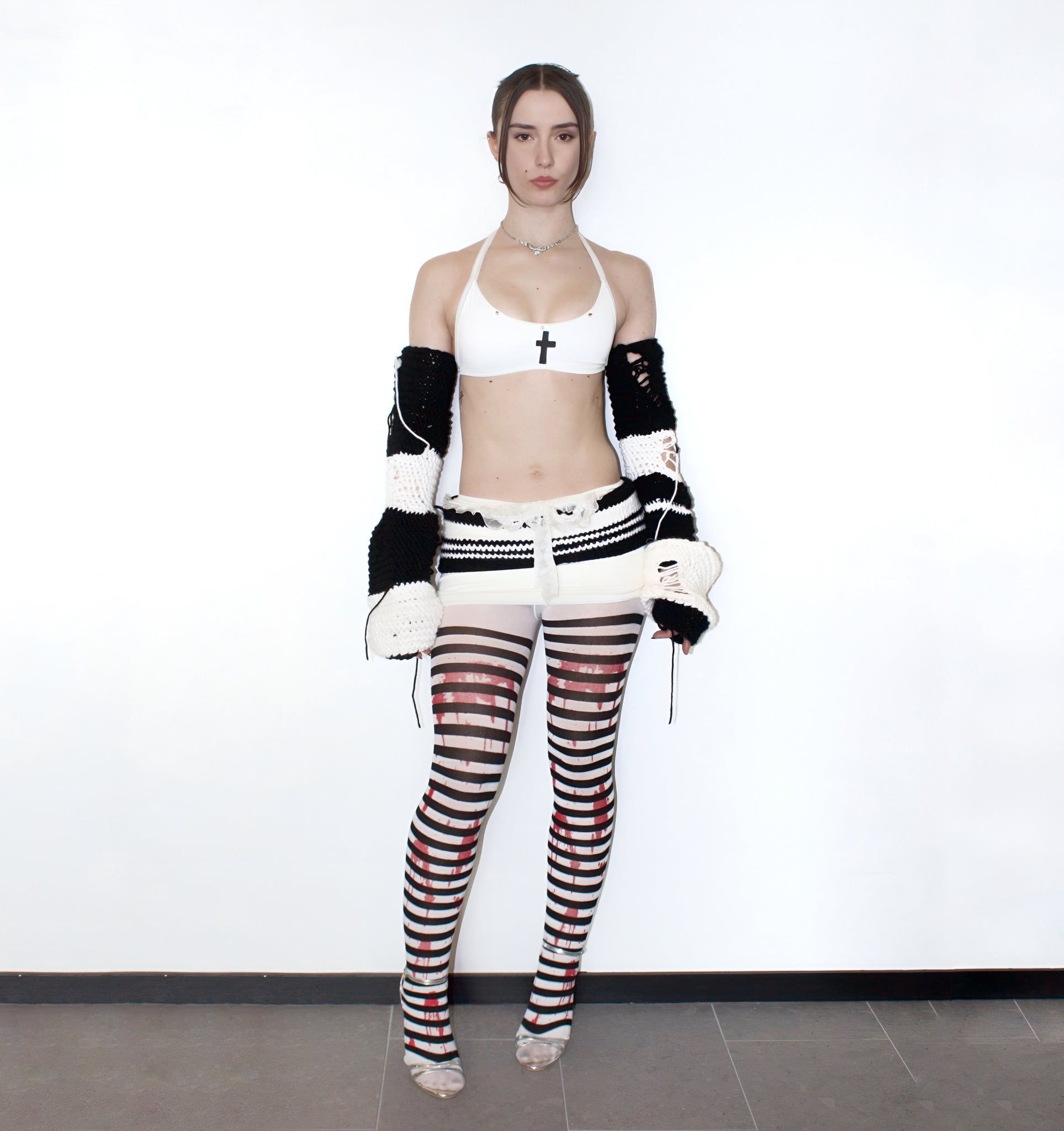 Includes : sleeves . Waist band . Mini skirt . Bandeau